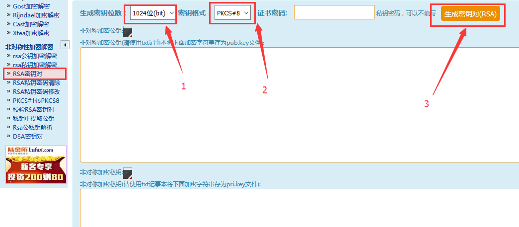 Login website:http://tool.chacuo.net/cryptrsakeyvalid