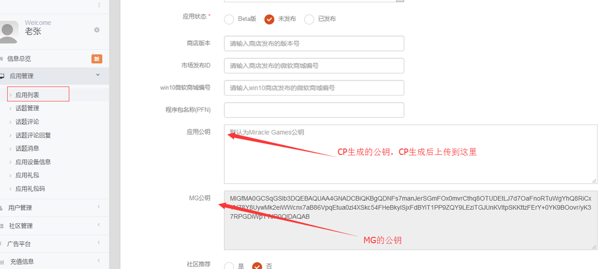 - The public key of MG will be disclosed to the developer, and the public key of the developer will be uploaded to MG through the developer background. MG's private key and developer's private key are reserved respectively。