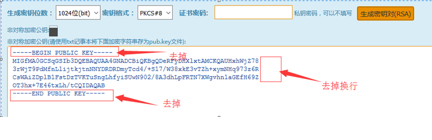 Build from website:http://web.chacuo.net/netrsakeypair(Or https://rsatool.org/)